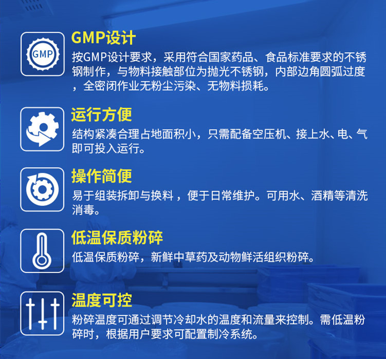 4、三頭多級粉碎,不僅粉碎效率高,同時可以粉碎得比較細,可以粉碎達180目,可以讓中藥得到更好的吸收。